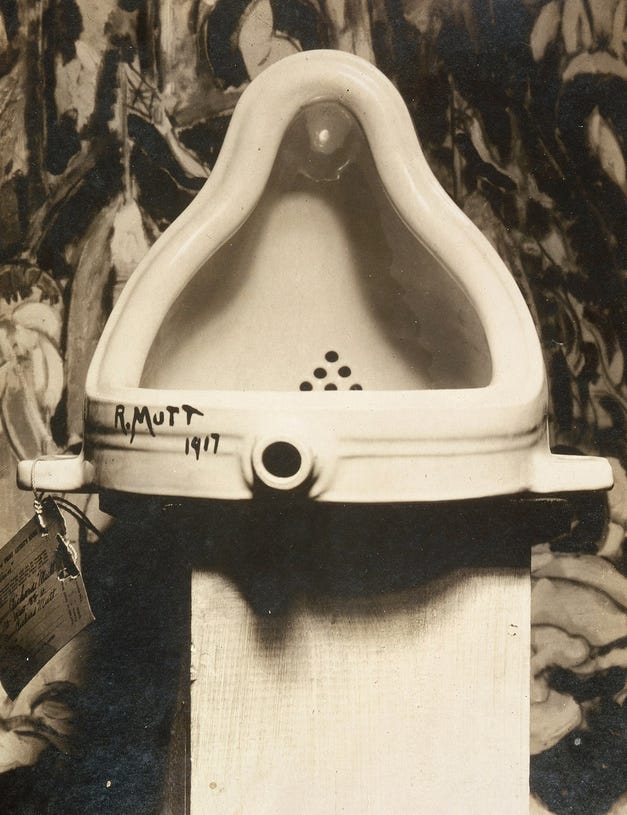 But since I had written the essay, I knew Metzger was in good company, too. He wasn’t the first avant-garde artist to subject art to destruction, derision, or debasement. The project of “conceptual art” to take the art object down a few pegs got going in earnest in 1917, when Marcel Duchamp signed a porcelain urinal “R. Mutt” and called it sculpture. Voila: Anti-Art.
